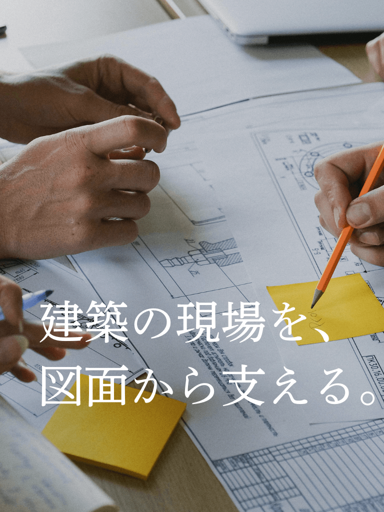 当社では、生産設計(施工図)業務と建築CAD技術支援の2つの分野を軸に、建築プロジェクトに対する技術支援を提供しており、
